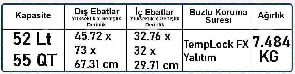 - Kapasite : 52 Litre | 39 Kutu