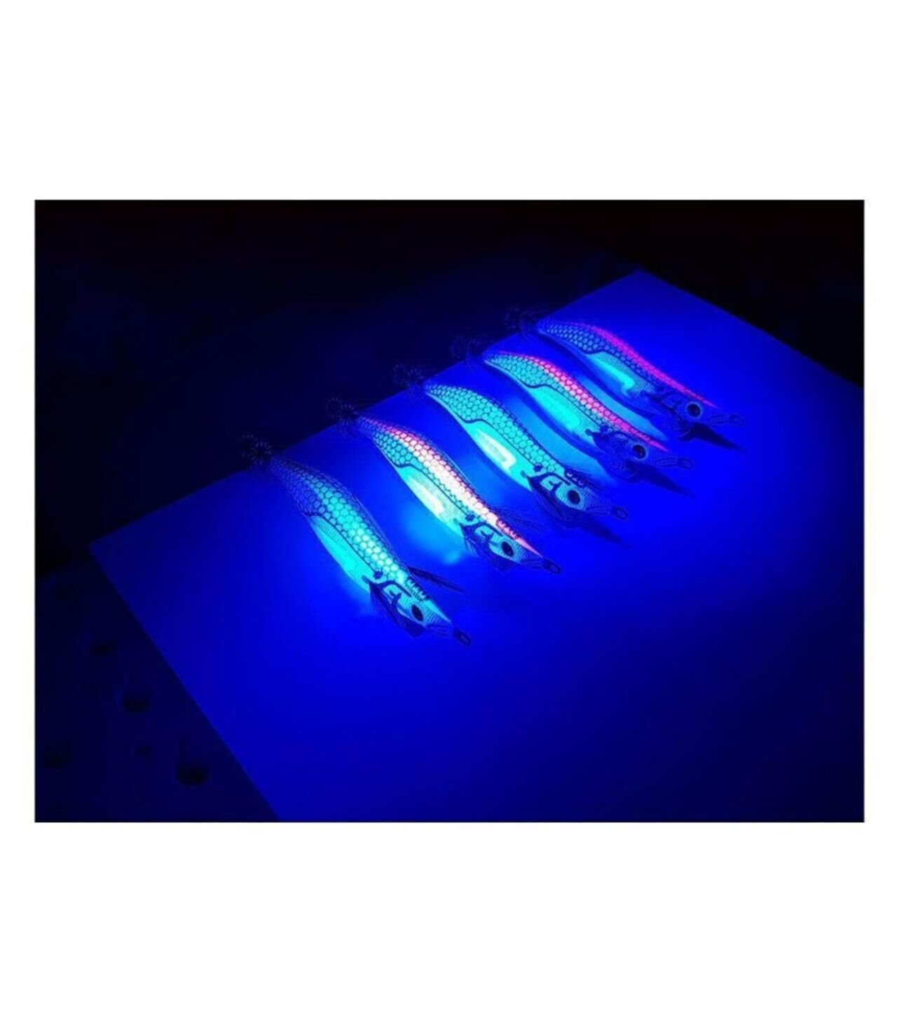 Ürünün üst kısmındaki etiket UV aktiftir, gündüz balıkçılığında ürünün görünürlüğünü arttırır ve yem yan tarafındaki özel etiket mavi parıltılıdır.