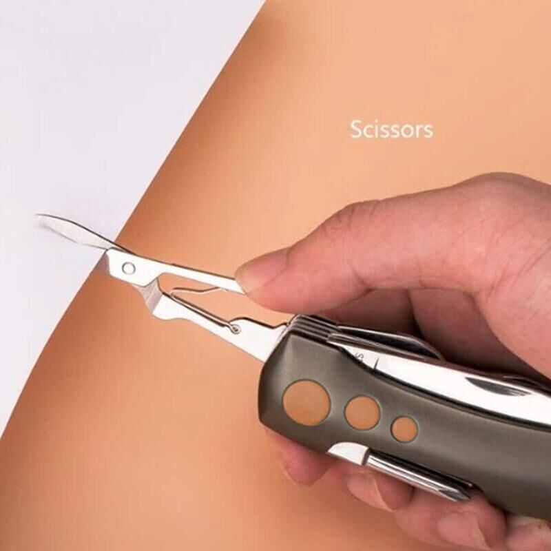 * İğne içerir-kargaburun, tel kesiciler, tel kesiciler, tıbbi acil pense ve diğer fonksiyonlar.
