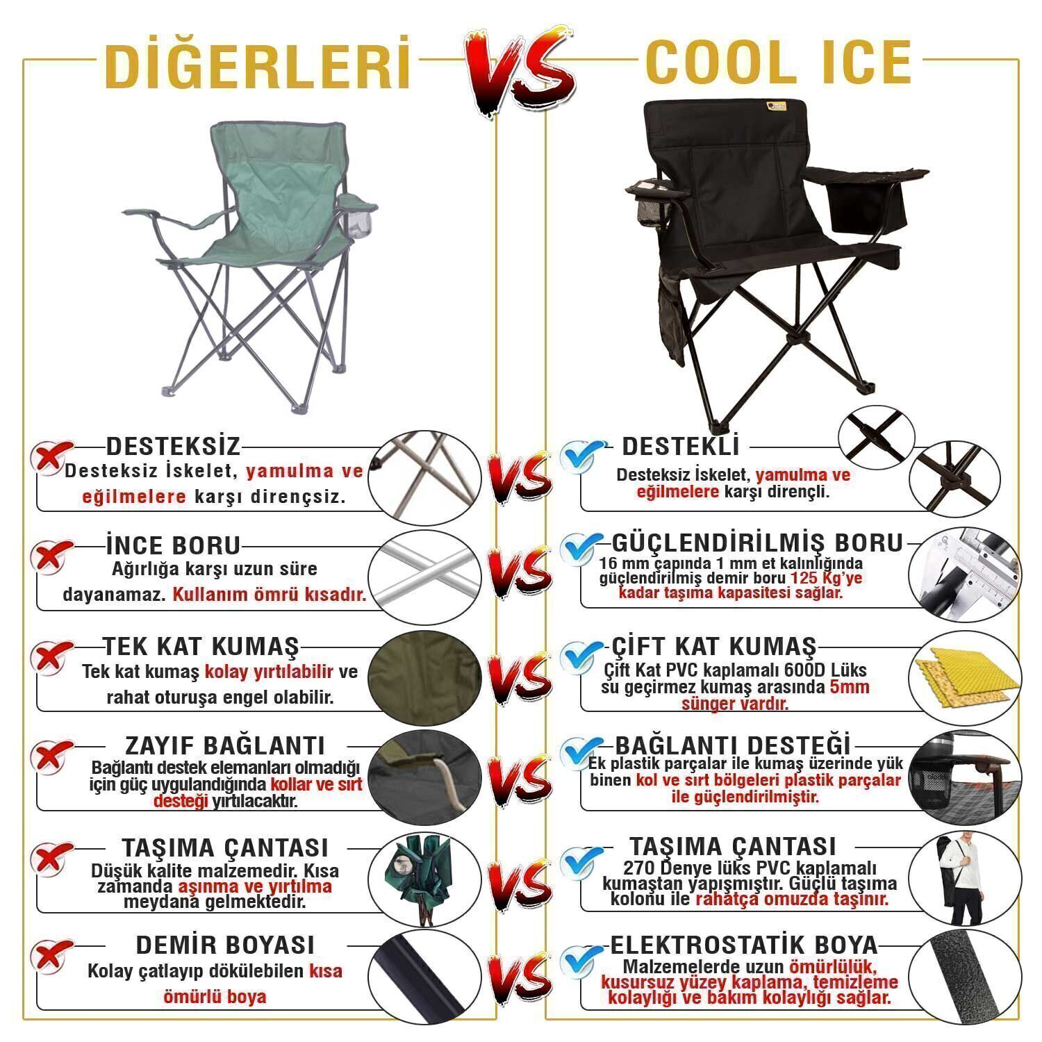 Siyah lüks tasarımı, modern görünümüyle kamp, sahil, piknik ve karavan aktivitelerinde şık bir kullanım sağlar. Katlanabilir mekanizması sayesinde taşıması kolay olan Funky Chairs Cool Ice Siyah Lüks Kamp Sandalyesi, kompakt yapısıyla araç bagajında minimum yer kaplar. Dayanıklı kumaş dokusu, hızlı kurulum özelliği ve hafif yapısı ile outdoor deneyiminizi bir üst seviyeye taşır.