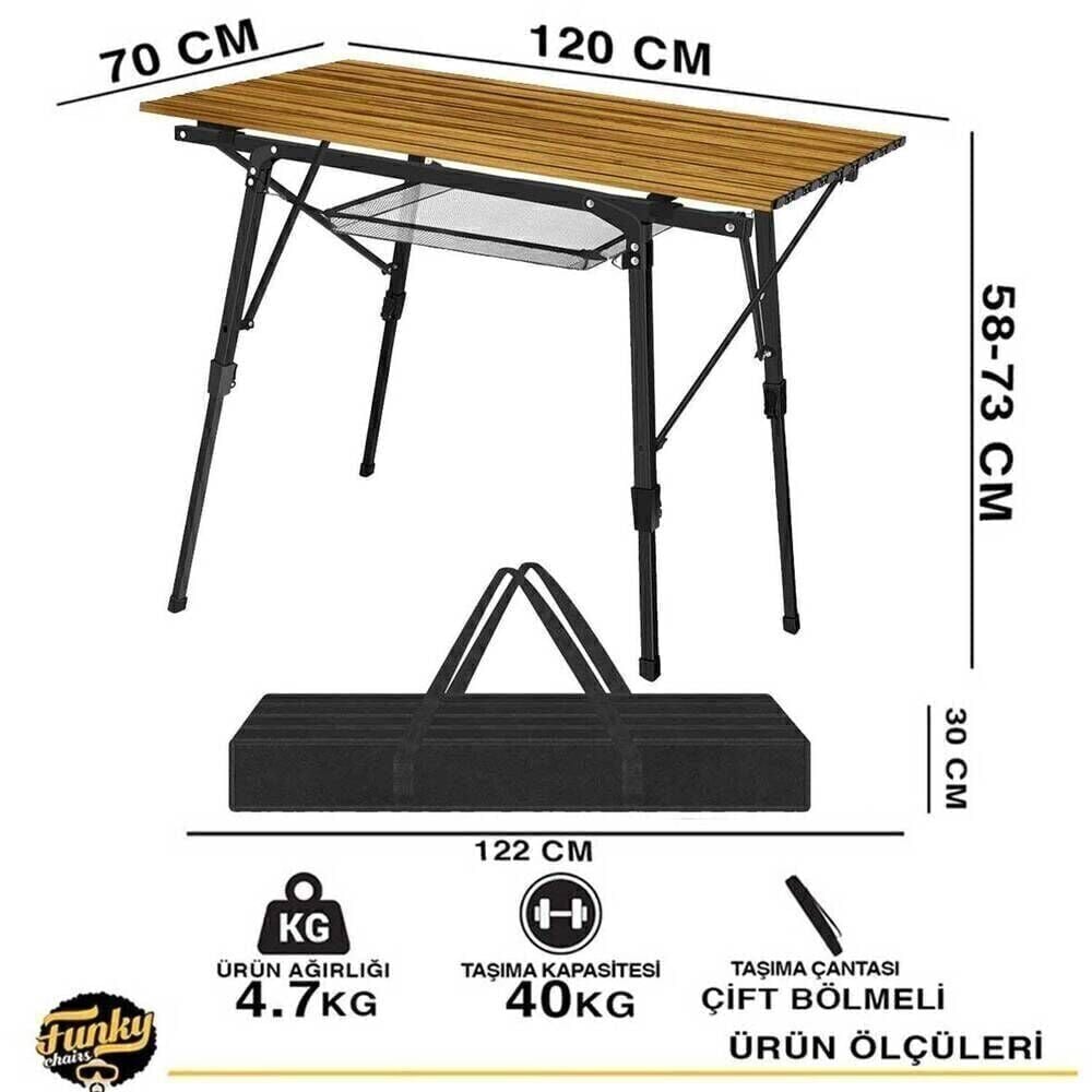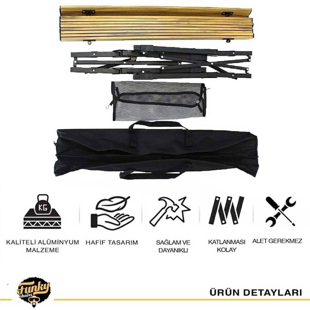 Funky Chairs Elite XL Alüminyum Teleskopik Ayaklı Kamp Piknik Masası – Ahşap Desen