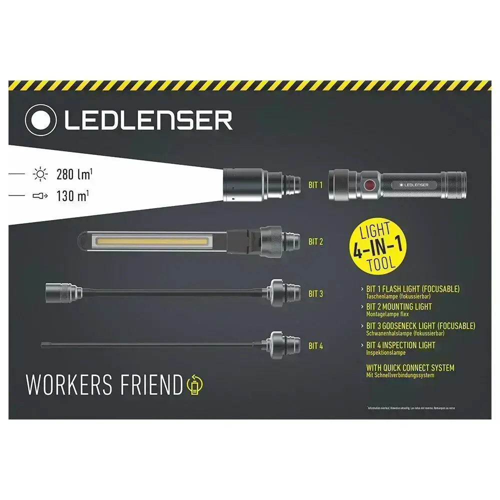 Ledlenser Workers Friend, zorlu çalışma koşullarında farklı aydınlatma ihtiyaçlarını tek bir sette karşılamak üzere tasarlanmıştır. Atölye, bakım-onarım ve saha çalışmalarında güvenilir performans sunan bu set; değiştirilebilir başlıkları sayesinde el feneri, alan lambası ve spot aydınlatma olarak kullanılabilir. Dayanıklı gövdesi ve kompakt yapısı ile profesyonel kullanıma uygundur.Ledlenser Workers Friend