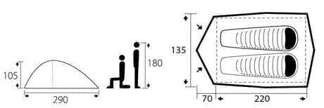 1 Kişinin birkaç dakika içinde kurup toplayabileceği 2 pollü kubbe tipi yapıya sahip ürün, Trimm’le özdeşleşen kum rengi seçeneğinin yanı sıra koyu yeşil renk seçeneğiyle de gelmektedir. Bantlı dikişli çift katman yapısı 3 mevsim şartları için gerekli su geçirmezliği sağlar. Giriş kısmında yer alan sundurma kısmı, eşyalarınızı muhafaza etmeniz için gerekli alanı oluşturur. Ürün 1 ya da 2 kişinin konaklaması için gereken ölçülere sahiptir.