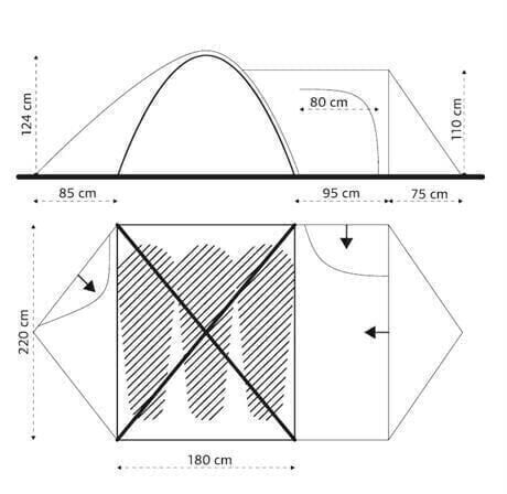 Ölçüler: 85+180+95+75(genişlik) x 220(uzunluk) x 124(çadır yüksekliği) x 110(sundurma yüksekliği) cm