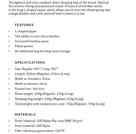 Turbat Nox 250 -11 Superlite Uyku Tulumu – 185