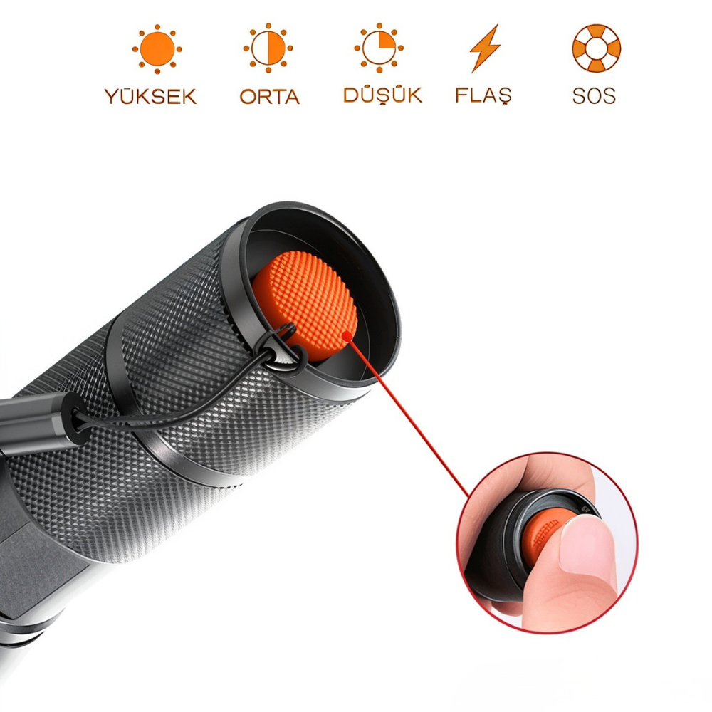 Farklı ışık modları (düşük, orta, yüksek, strobe ve SOS) sayesinde kullanıcıya esneklik sunarken, ergonomik tasarımı uzun süreli kullanımlarda konfor sağlar. Evde, araçta, kamp çantasında veya iş yerinde her zaman hazır olması gereken bir üründür.