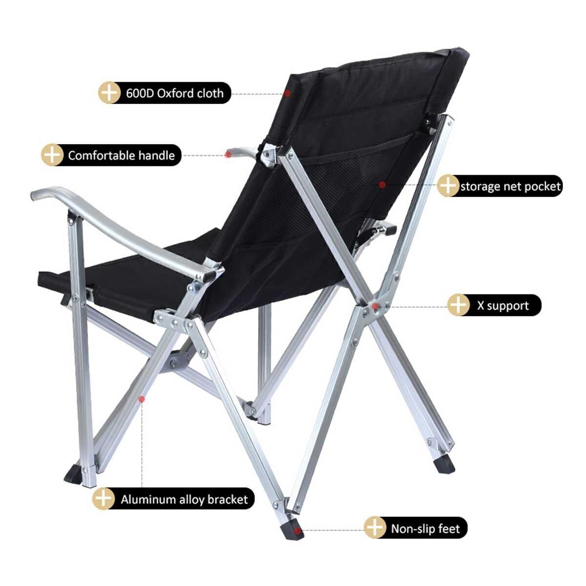 Konforlu Tasarım - Bu kamp sandalyesi 120kg/265lb taşıyabilir. Sandalyenin kumaşı, üzerinde otururken kendinizi rahat ve rahat hissetmenizi sağlar ve kaymaz ayaklar bu sandalyenin stabilitesini artırır. Sandalyeyi düz bir zeminde kullanmayı unutmayın!