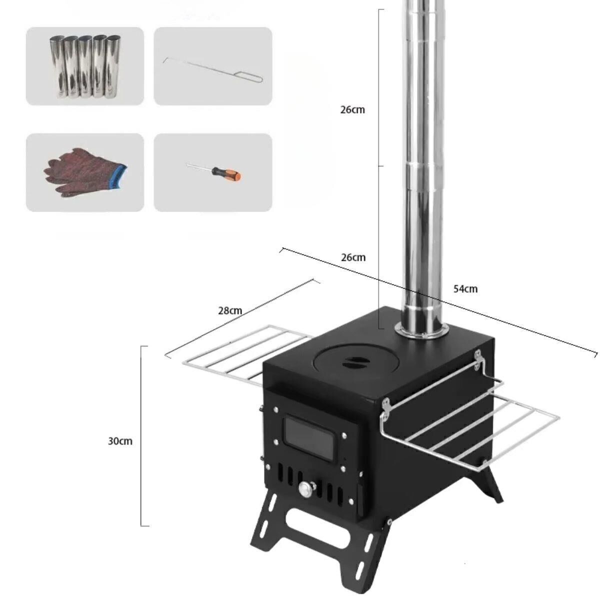 Çok amaçlı kullanım sunan bu portatif kamp sobası, yalnızca çadırınızı ısıtmakla kalmaz; aynı zamanda yemek pişirmek, su kaynatmak veya üzerine konulan demir aparatlarla yemek hazırlamak için de kullanılabilir.