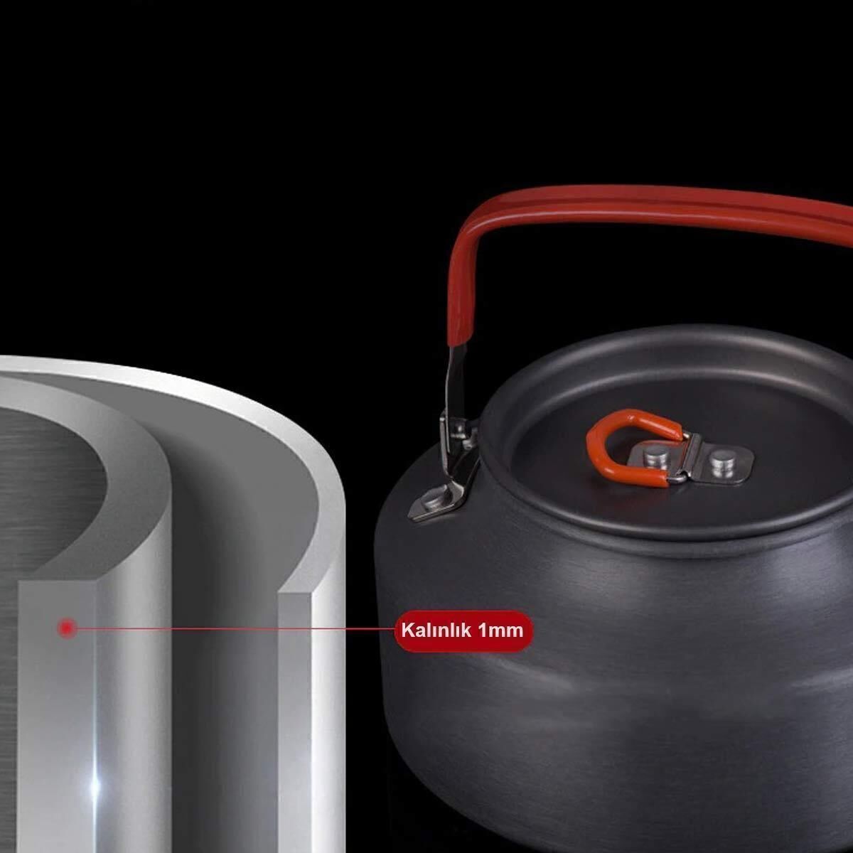 · Alüminyum alaşım malzemeden üretilmiş olan kamp kettle ürünümüzün kalınlığı 1mm’dir