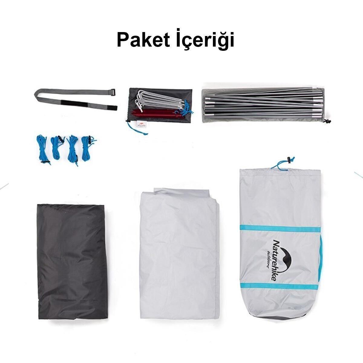 · Su Geçirmezlik: Naturehike 3 kişilik çadır dış kısmı 210T gümüş ile kaplanmış polyester kumaş PU 2000 mm su geçirmezliği mevcuttur. İç çadır nefes alabilen 210T polyester kumaş kullanılmıştır.