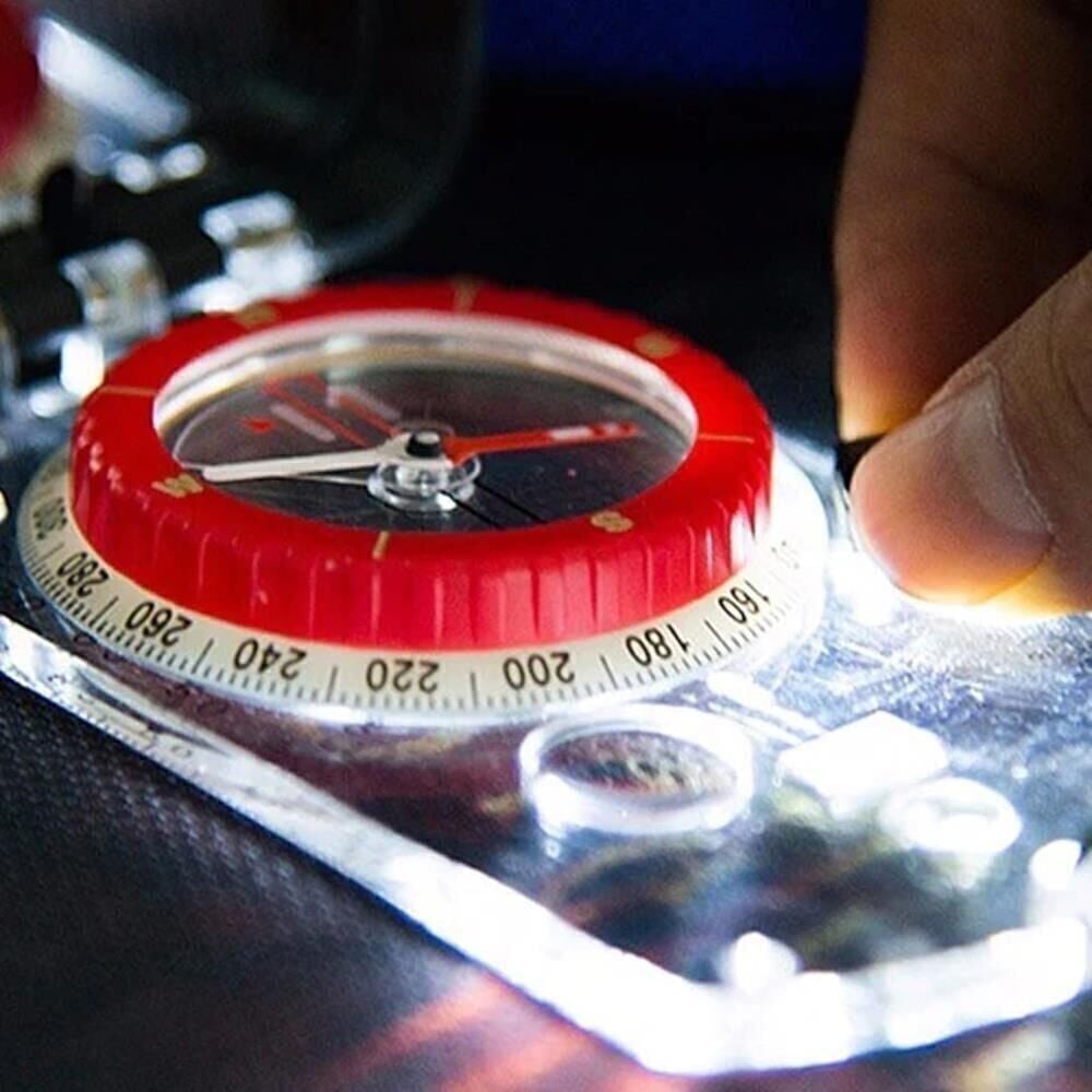 Keşif gezileri ve oryantasyon kursları için ideal pusula. Işıklı taşıma kablosu dahildir