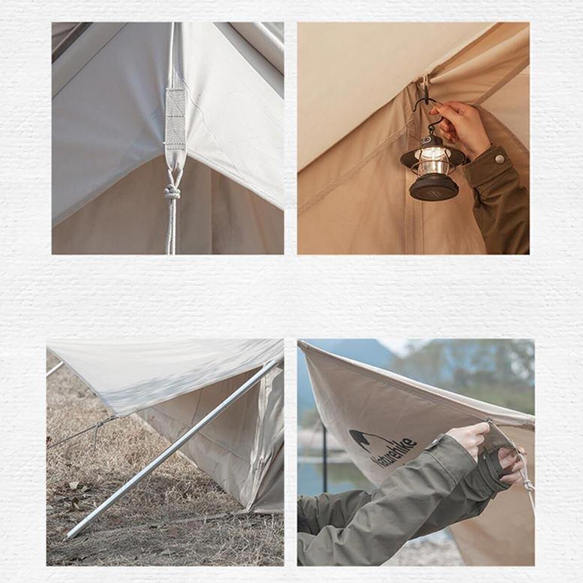 · Naturehike Pamuklu Kumaş Serisi: Su geçirmez ve nefes alabilir olan bu kumaşa ek olarak özel küf önleyici işlem uygulanmıştır.