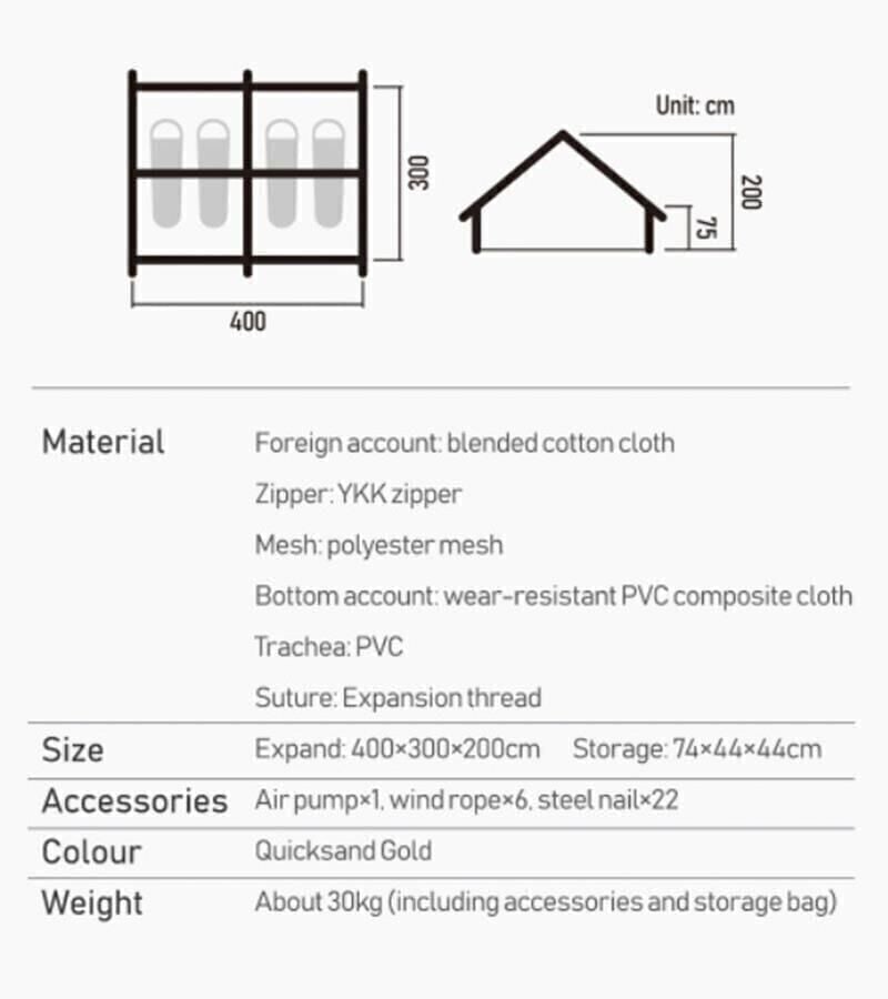 Naturehike NH20ZP010 şişirilebilir Glamping çadırı hem aile hem de kişisel uygulamalar için uygundur.