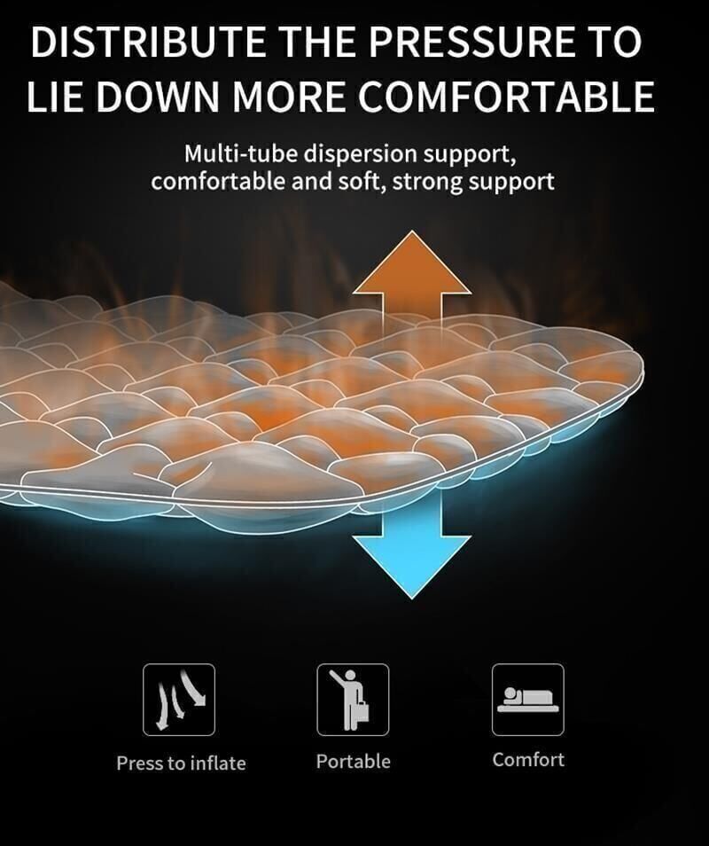 Naylon kumaş fiziksel aşınma ve yıpranmayla iyi başa çıkar. İç katman termoplastik poliüretan kauçuktan yapılmıştır. Bu malzeme, kişi uykusunda döndüğünde o kadar yüksek sesle gıcırdamaz. Çok katmanlı kumaş, matın dayanıklılığını arttırır ve ürünün içindeki sıcaklık seviyesini arttırır. Mat yerleşik bir pompa ile donatılmıştır. Pompa, matın birkaç dakika içinde şişip inmesini sağlayan çift valf sistemine sahiptir. Başlık boynu, omuzları ve başı desteklemek için bir yastıkla donatılmıştır. Yatak, yükü ürünün tüm yüzeyine dağıtan ve tüm vücuda eşit destek sağlayan 70'ten fazla hava hücresine sahiptir. İçinizin rahat olmasının yanı sıra soğuk zemine karşı ek korumaya da sahip olursunuz.