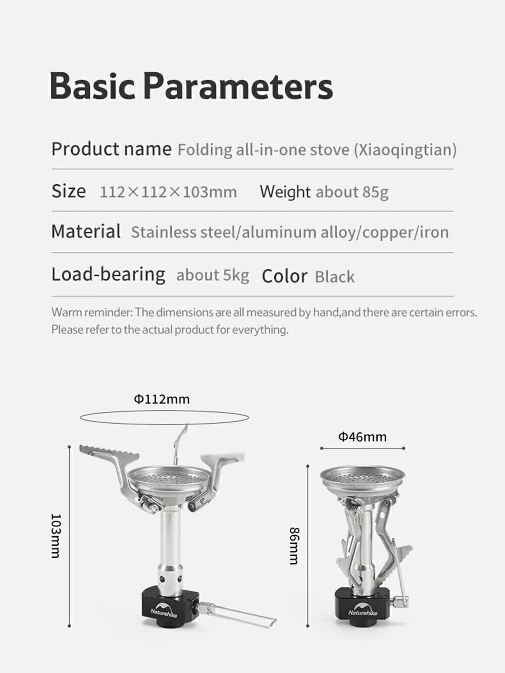 Naturehike Folding İntegrated Stove Üçgen desteği, iyi stabilite. Bu brülör çok küçük olsa da, taşıyabileceği maksimum ağırlık yaklaşık 5kg.