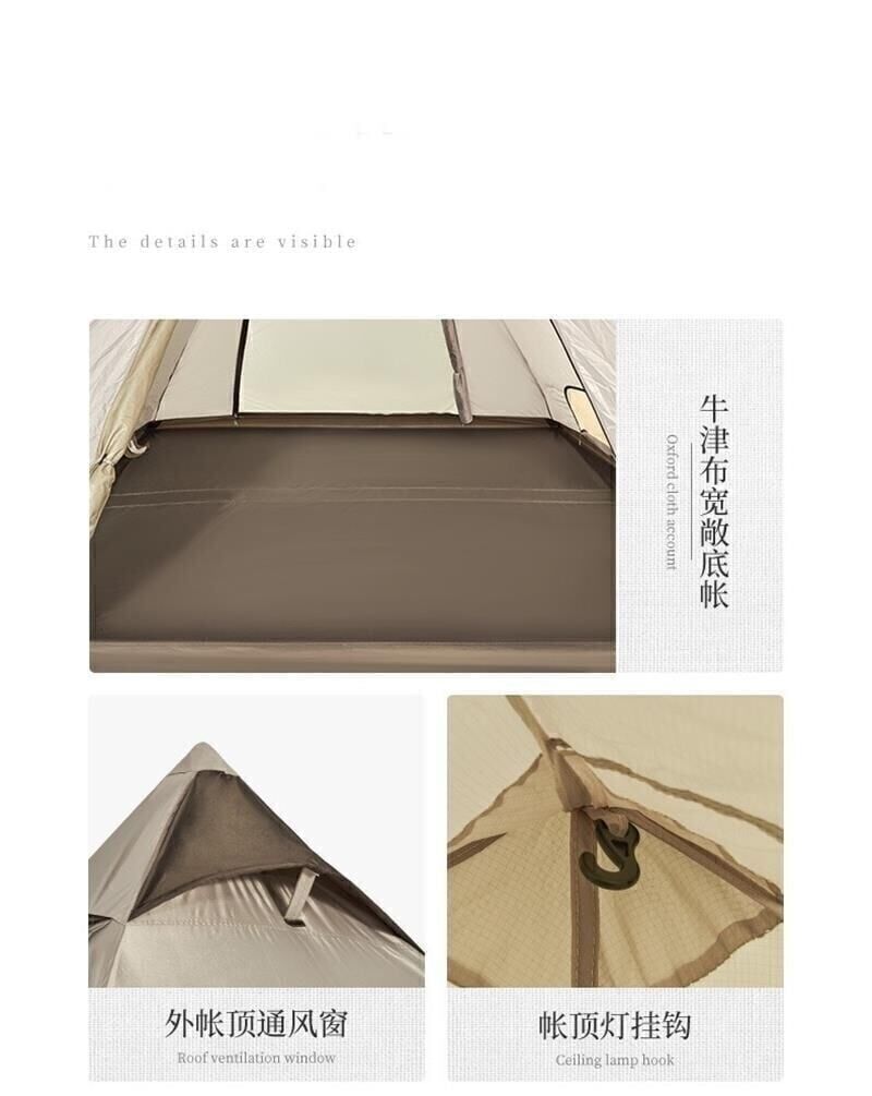 Naturehike Glamping 4 Kişilik Çift Katmanlı Otomatik Kurulum Piramid Çadır