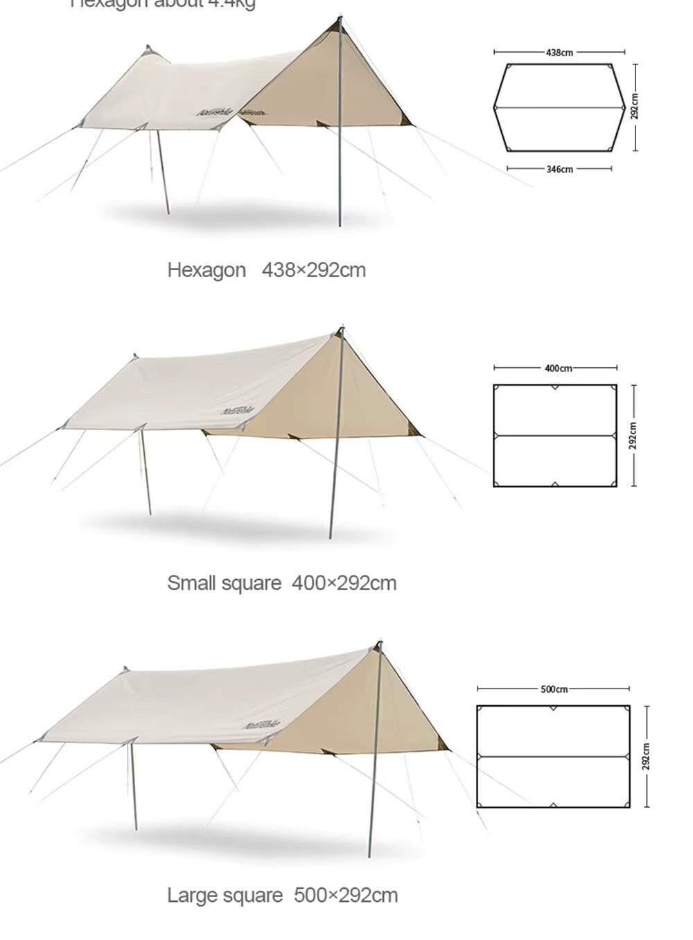 Naturehike Hexagon Glamping 3x4.8 mt Tarp [Güneş ve Rüzgar Koruma Tentesi]