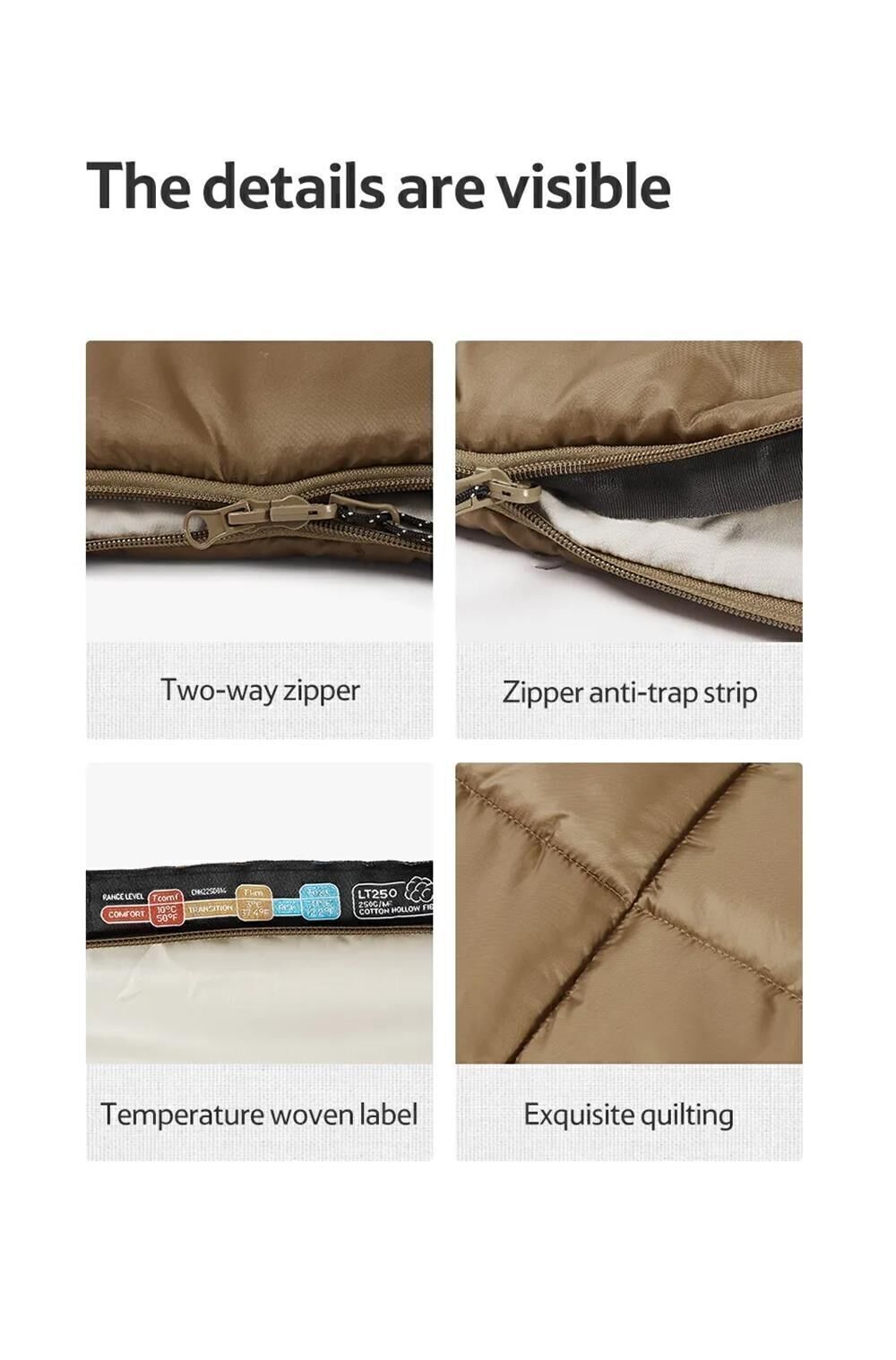 § Çıkarılabilir fermuarlı zarf modeli, böylece bir tarafı battaniye olarak ve bir tarafı uyku tulumu olarak kullanılabilir