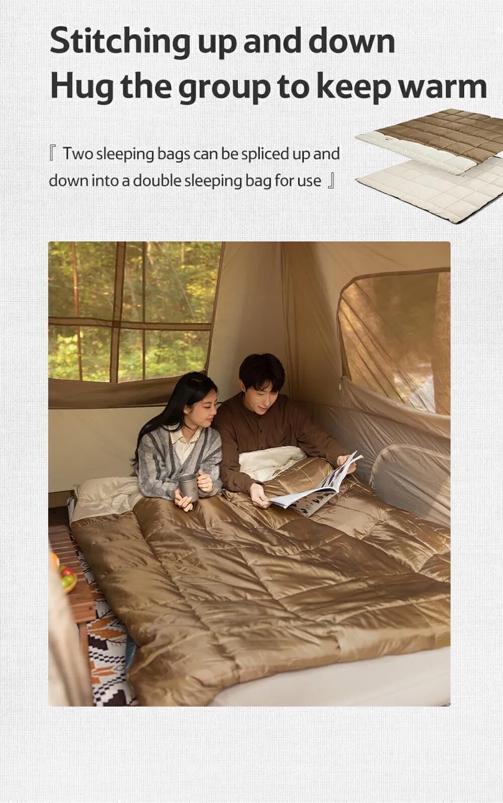 § Çıkarılabilir fermuarlı zarf modeli, böylece bir tarafı battaniye olarak ve bir tarafı uyku tulumu olarak kullanılabilir
