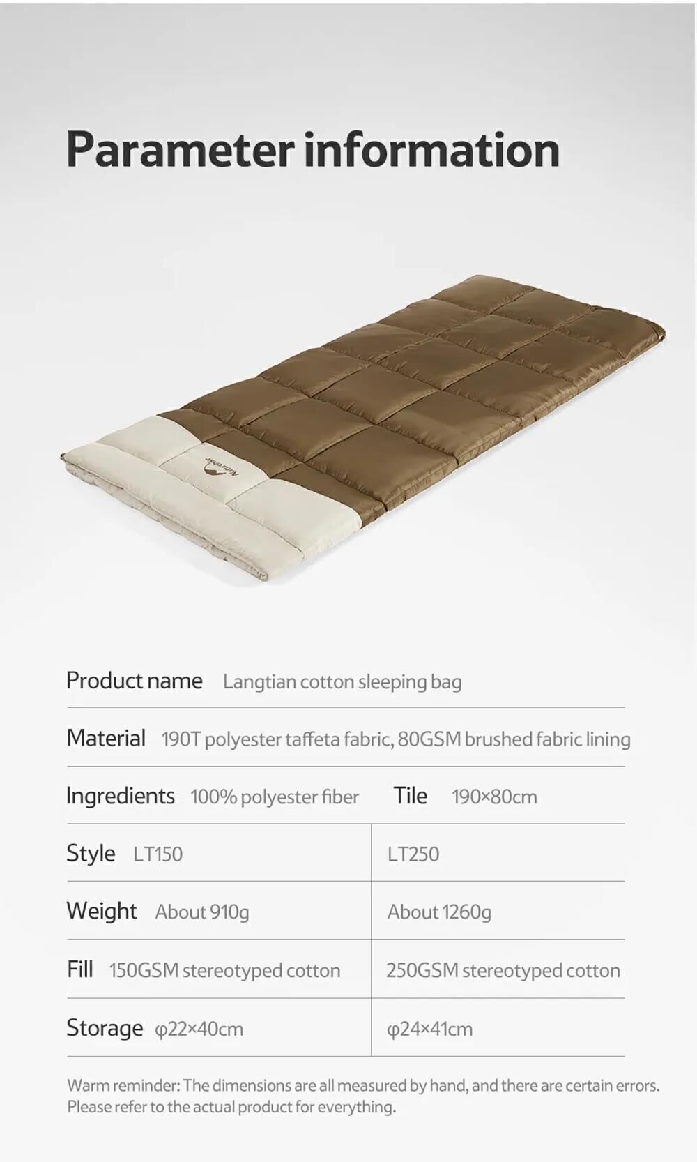 Naturehike LT250 Zarf Tarzı Pamuklu Uyku Tulumu -11°C