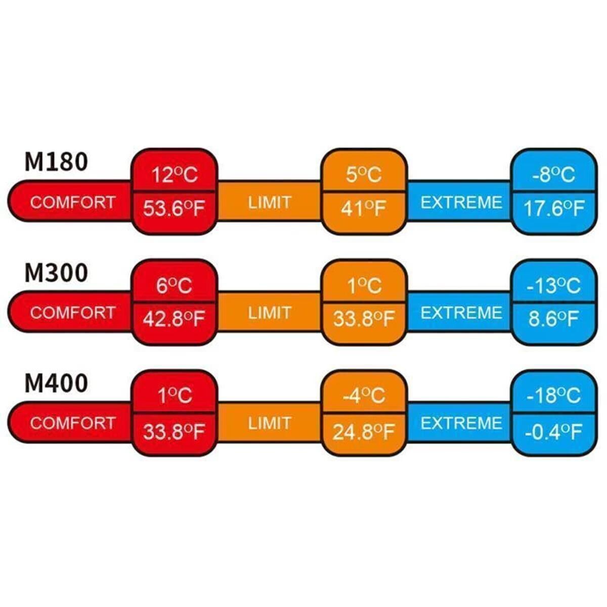 Önerilen uyku bölgesi: M180(36,5℉ ila 42,8℉) / M300(24,8℉ ila 32℉) / M400(17,6℉ ila 24,8℉).