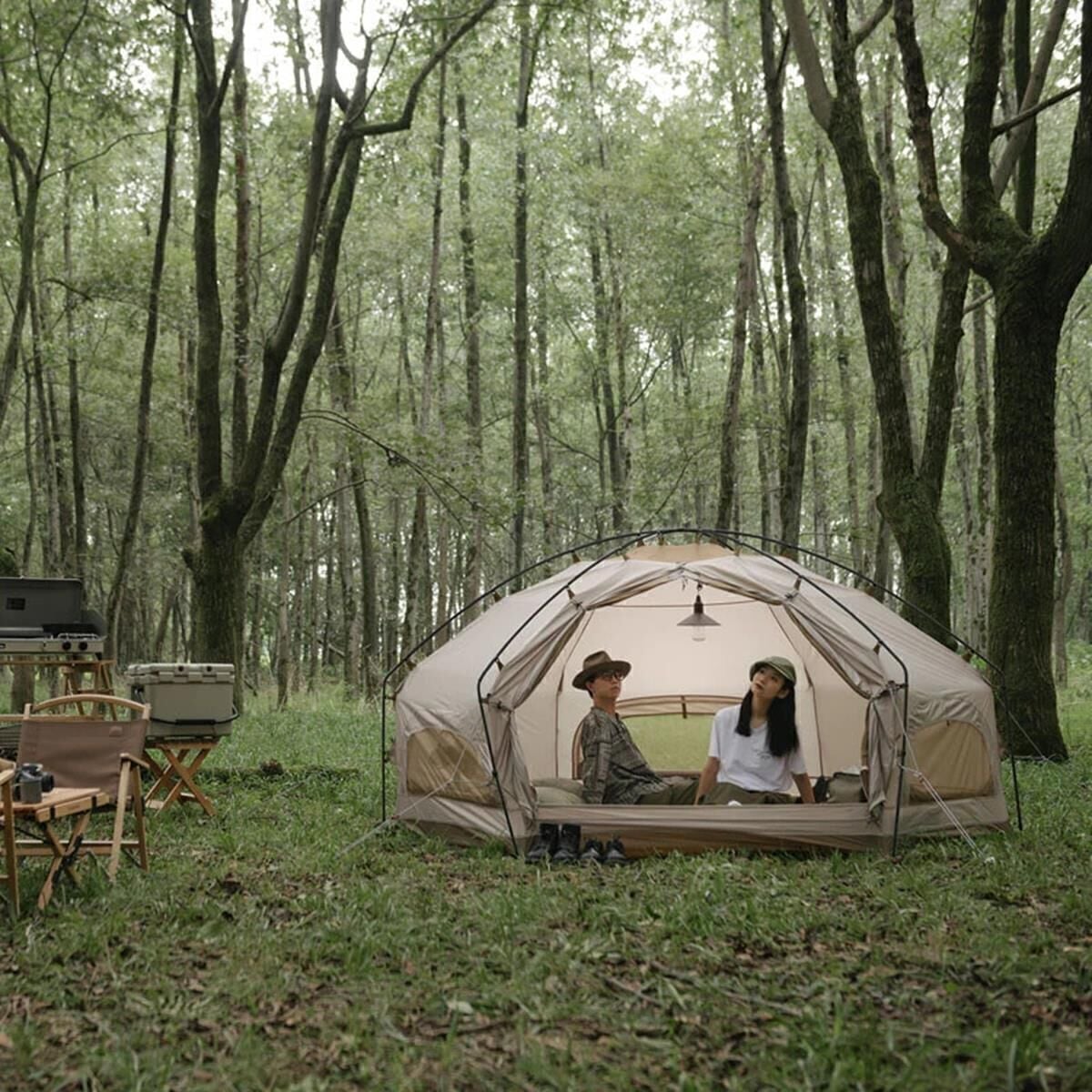 Yine de Naturehike 4 kişilik Glamping çadırı NH21ZP001 ile. Yemek, yemek pişirme ve rahatlatıcı masa ve sandalyeler kurulacaktır. Tasarlanan büyük kampüs ile büyük bir kampüs hazırlayın. Kamu hizmetleri için yeterince geniş bir alan, eğlence ihtiyaçları için yeterince alan, doğaya yakın