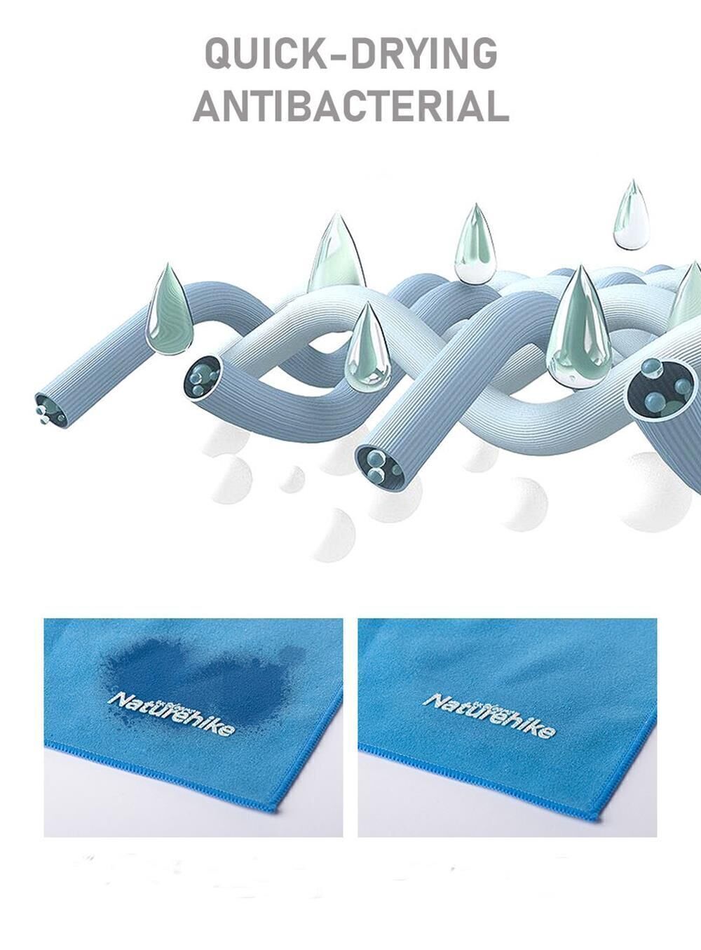 Naturehike'tan Quick Dry teknolojisine sahip ultra hafif küçük boy havlular. Bu havlu temel olarak ince ve kompakttır (sağlanan çantaya konabilir), bu nedenle genellikle spor ve seyahat için kullanılır.