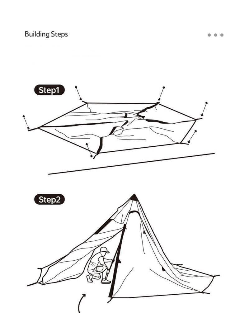 Bu büyük piramit çadırı, iki açık hava seyahat çadırına eşdeğerdir. Birkaç kişi için yeterli alana sahip ağ örgülü iç çadır. Giriş kanopisi yapmak için kapıyı bir direk kullanarak kaldırabilirsiniz.