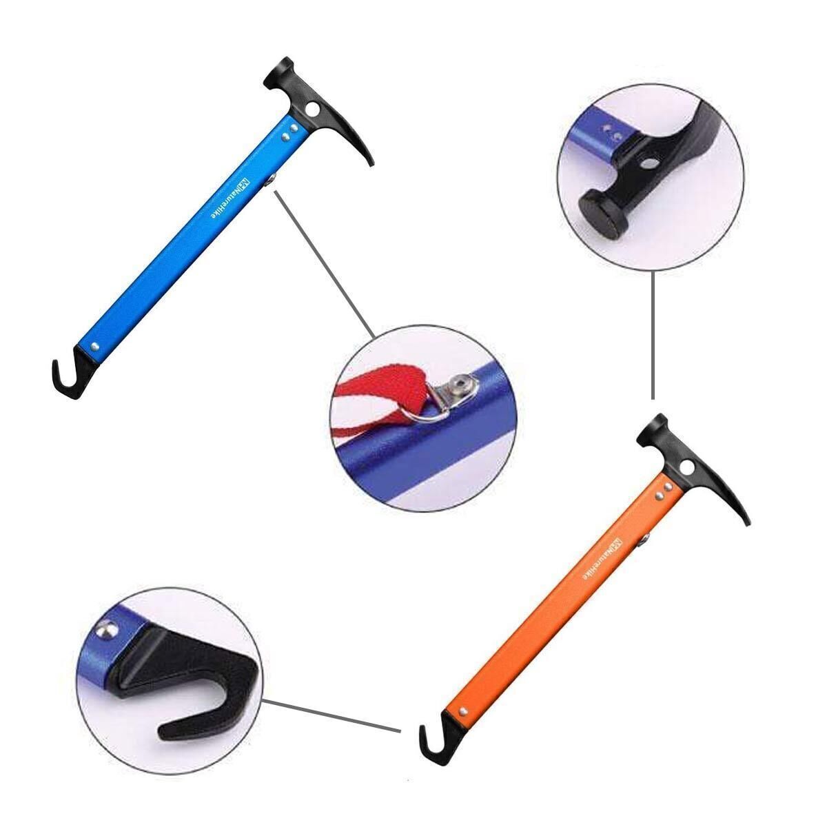 · Çekiç bölümü özellikle çadır kızaklarını toprağa çakarken yardımcı olurken kanca ucunu ise kazıkları çıkarırken kullanabilirsiniz