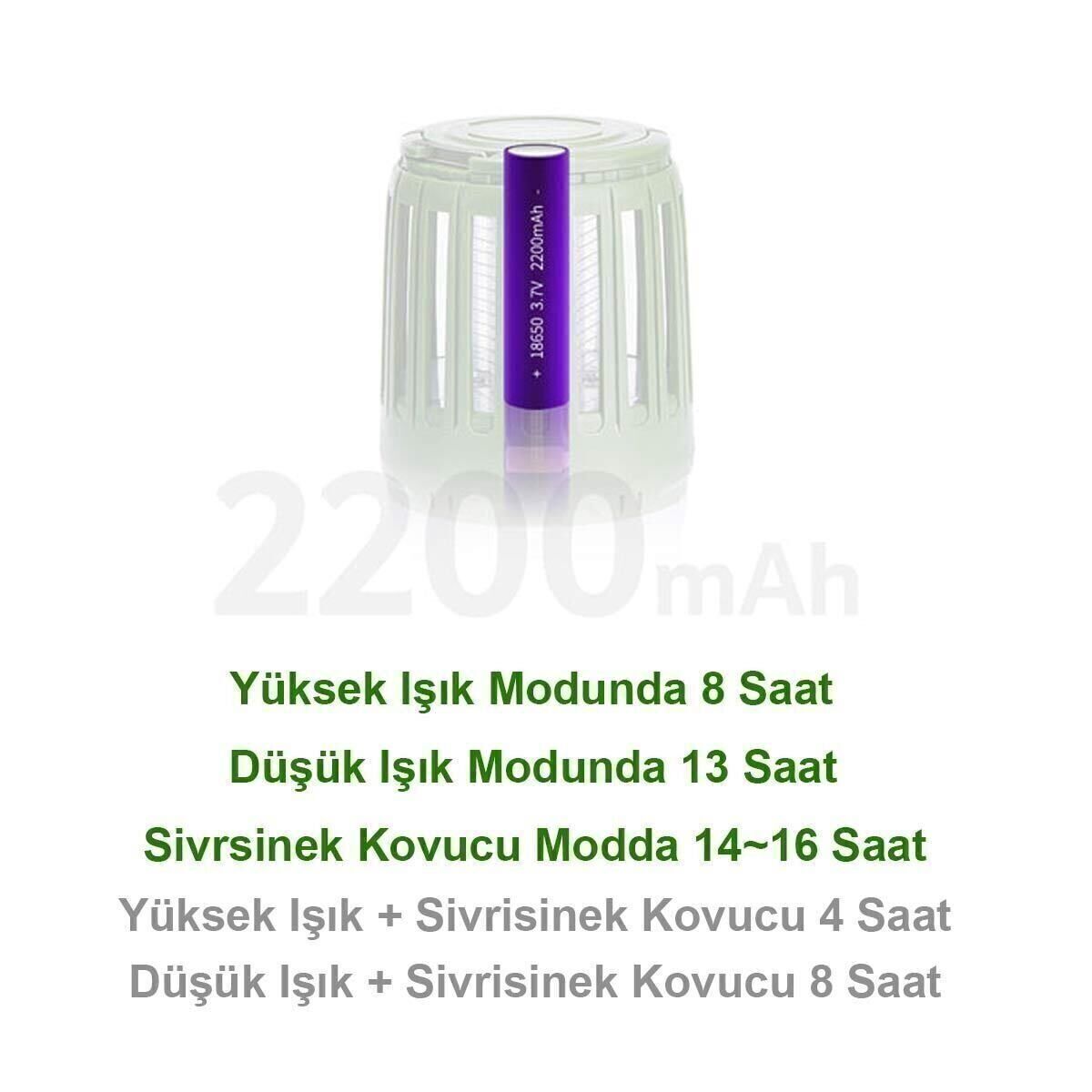 · Sivrisinek kovucu ışık ise tam şarj doluyken 14-16 saat arası açık kalabilmektedir