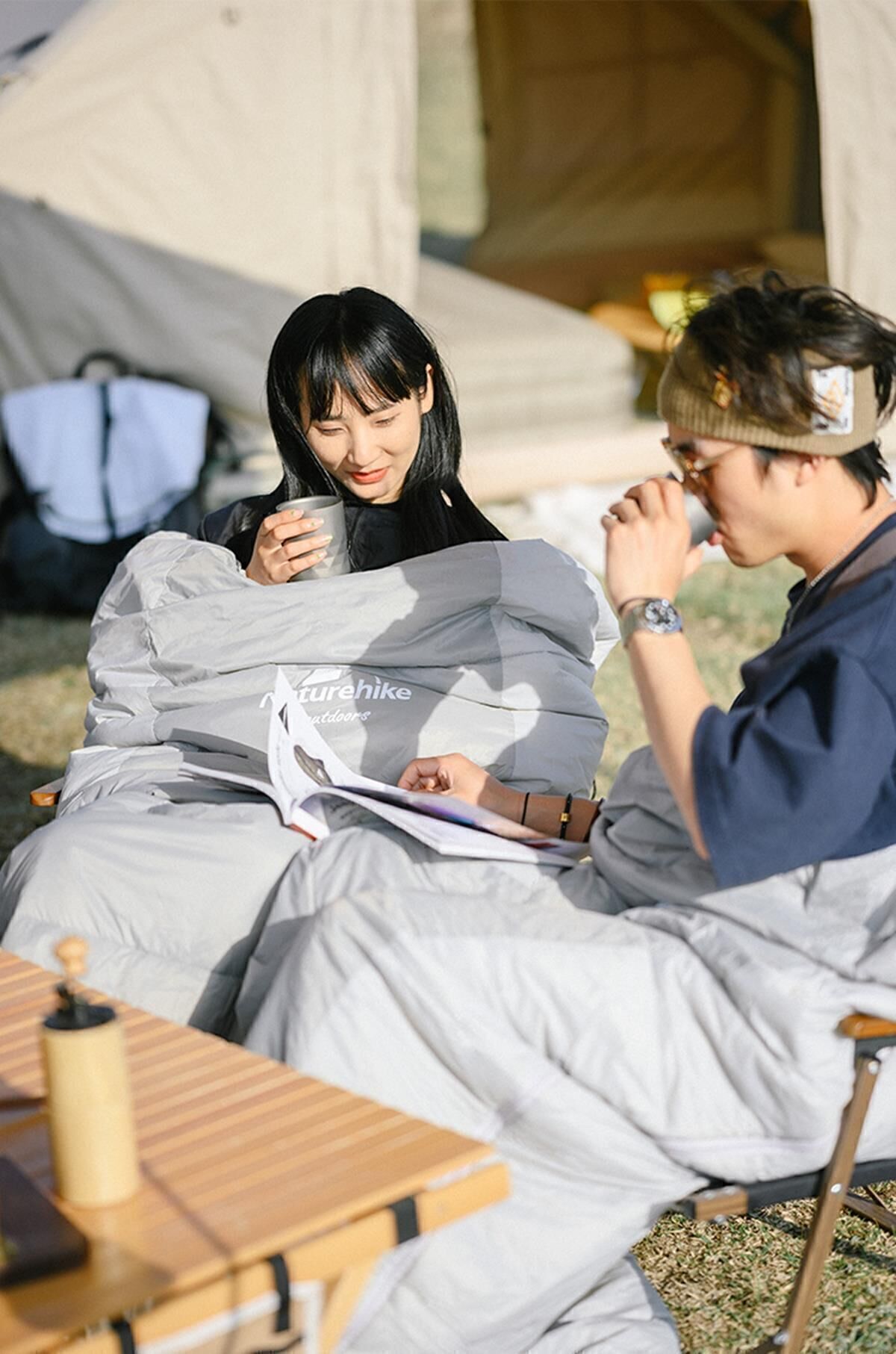 Gerekirse, aynı tipten ikisi (sağ, sol) kolayca birleştirilebilir ikili uyku tulumu.