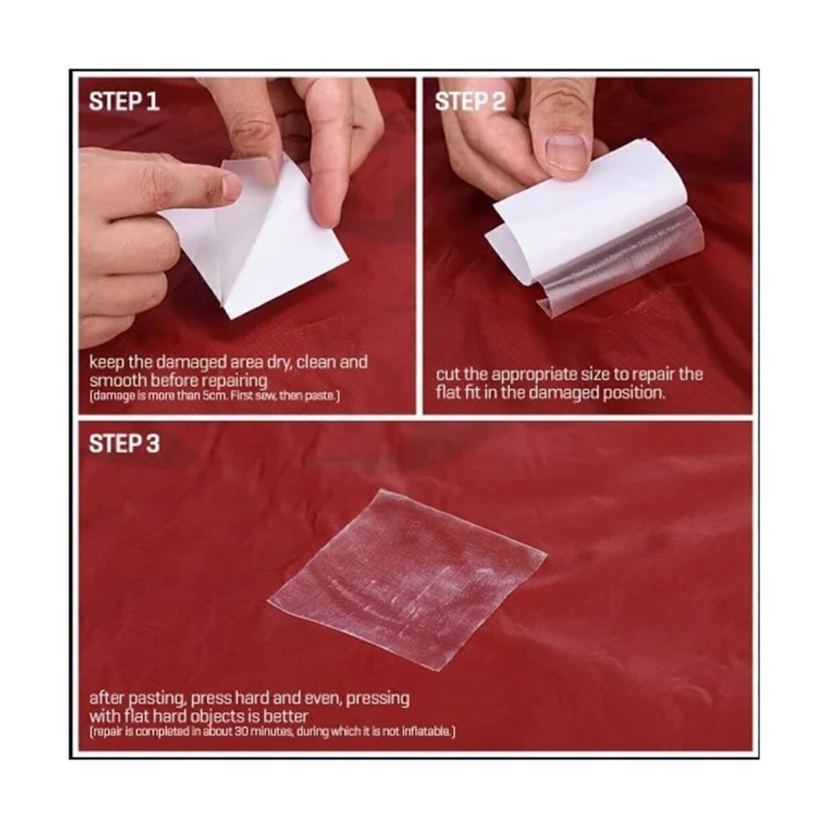 Çadır, uyku tulumu, şişme mat, sünger mat, şişme yastık, su geçirmez çanta gibi ürünlerinizin yırtılmasına karşında yama özelliği vardır.