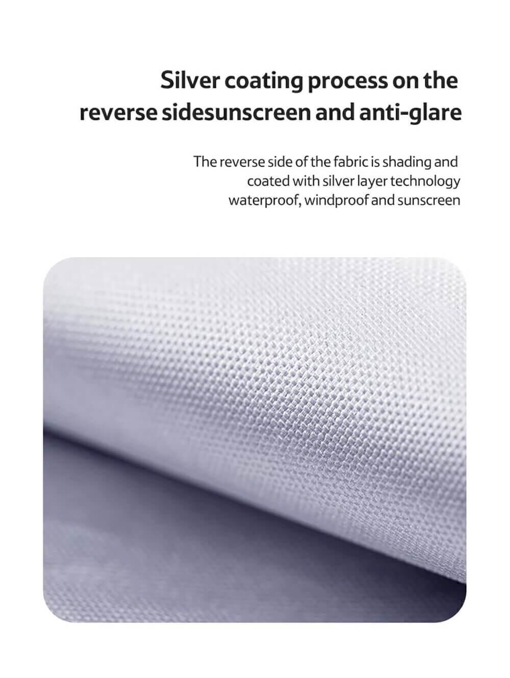 Polyester yüzey, malzemeyi su geçirmez hale getiren ve UV ışınlarını yansıtan ince bir gümüş kaplamaya sahiptir.