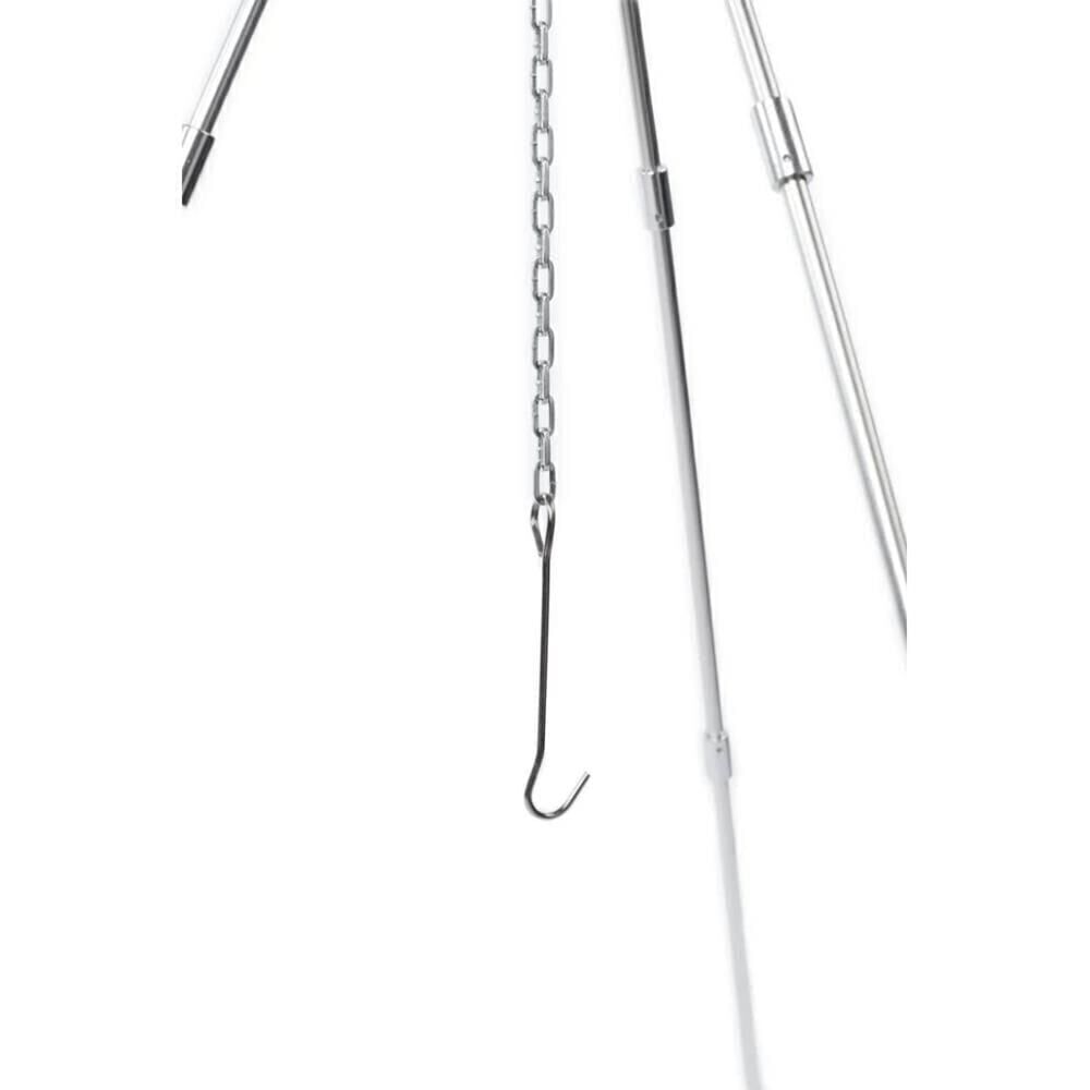 Naturehike Light tripod gümüş (NH17S00S-G), yürüyüş, balık tutma ve avcılık sırasında yemek pişirmek için vazgeçilmez bir cihazdır. Üstte bir noktaya bağlanan üç destekten oluşur ve üzerine bir kazan, su ısıtıcısı veya su ısıtıcısının asıldığı noktaya bir kanca takılır. Tripod taşıma için kolayca açılır ve katlanır ve bir taşıma çantasıyla birlikte gelir.