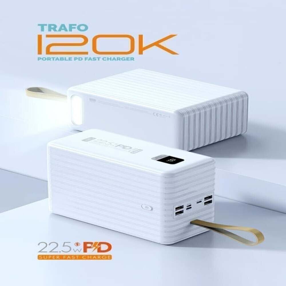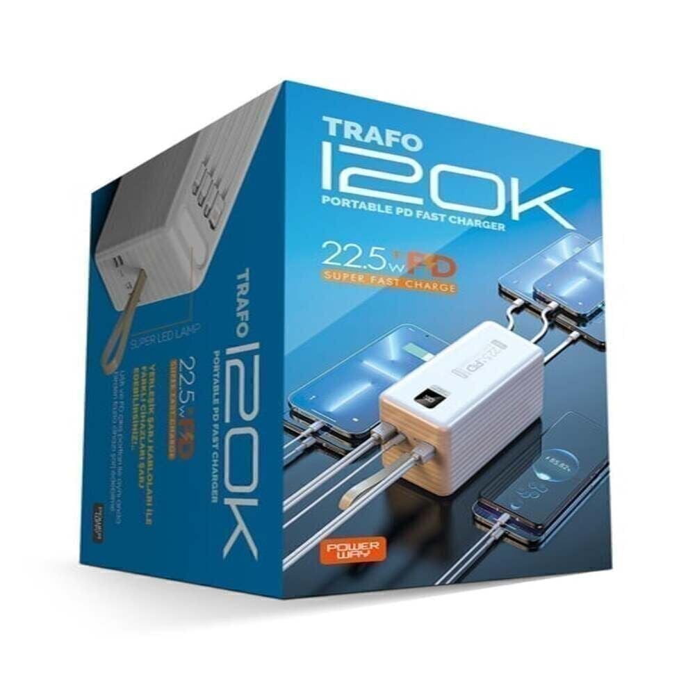 Powerway TRAFO120 Beyaz 120.000 Mah PD 22.5W Dahili Kablolu Hızlı Şarj Işıklı Powerbank