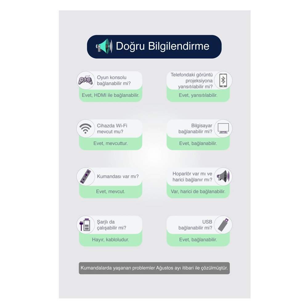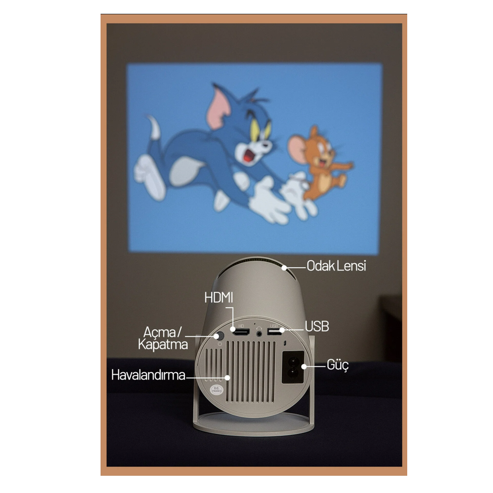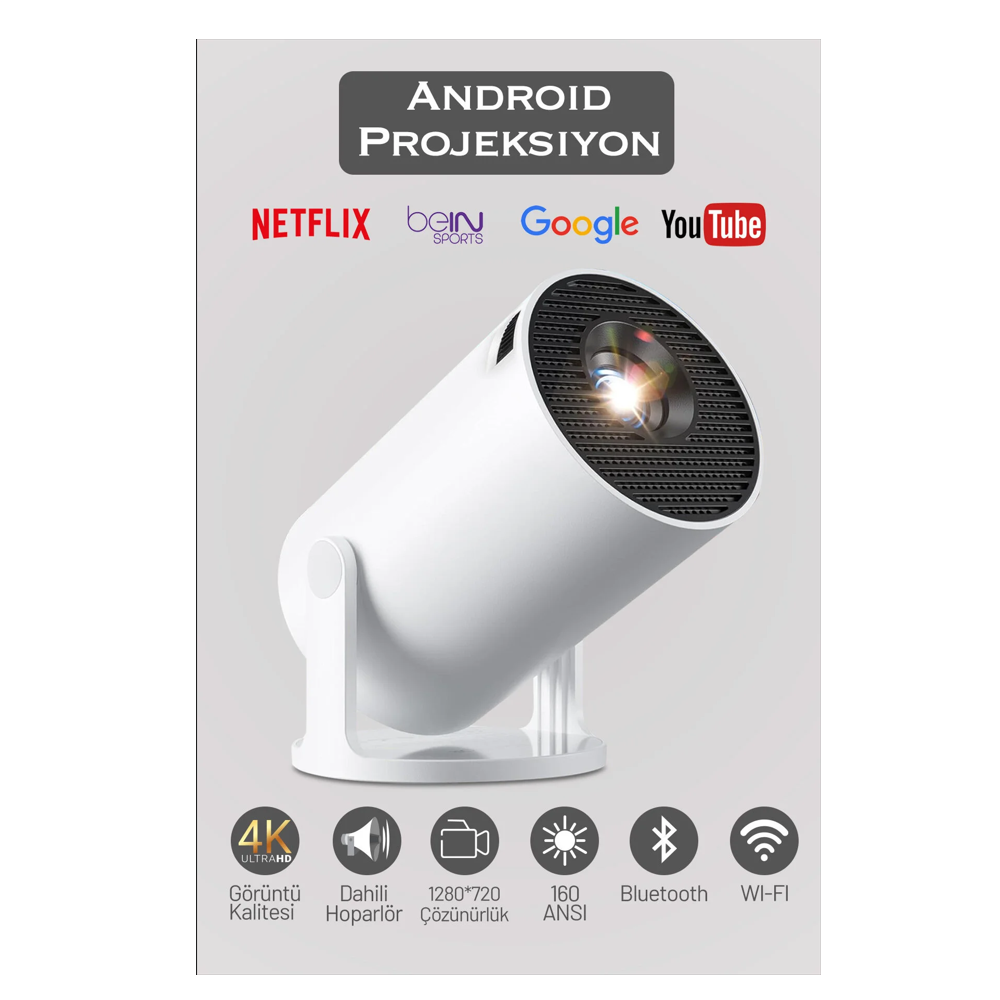 HY300 projeksiyon cihazı, geniş bağlantı seçenekleri ile telefon, tablet, bilgisayar ve medya oynatıcılar ile uyumlu çalışır. HDMI, USB ve kablosuz bağlantı desteği sayesinde içeriklerinizi zahmetsizce yansıtabilir, kablo karmaşası olmadan kullanım kolaylığı elde edebilirsiniz. Dahili hoparlör sistemi temel ses ihtiyaçlarını karşılarken, harici ses sistemlerine bağlanabilme özelliği daha güçlü bir ses deneyimi sunar.