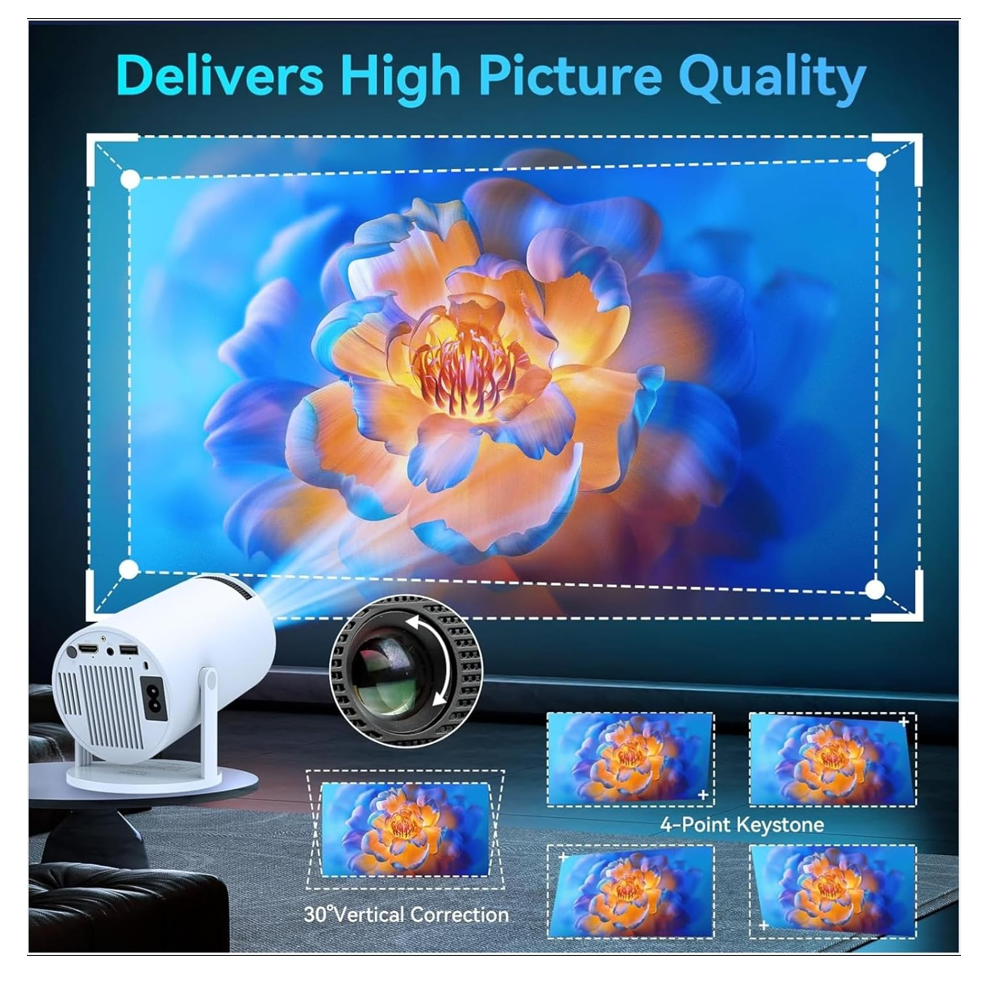Akıllı bağlantı özellikleriyle öne çıkan Spiface HY300 Pro projektör, Wi-Fi ve Bluetooth desteği sayesinde telefon, tablet ve bilgisayarlarla kablosuz bağlantı kurmayı kolaylaştırır. Dahili işletim sistemi sayesinde popüler video uygulamalarına doğrudan erişim sağlayabilir, ek cihaza ihtiyaç duymadan içerik izleyebilirsiniz. Otomatik odaklama ve görüntü düzeltme özellikleri, kurulumu zahmetsiz hale getirerek her yüzeyde düzgün görüntü elde edilmesini sağlar.